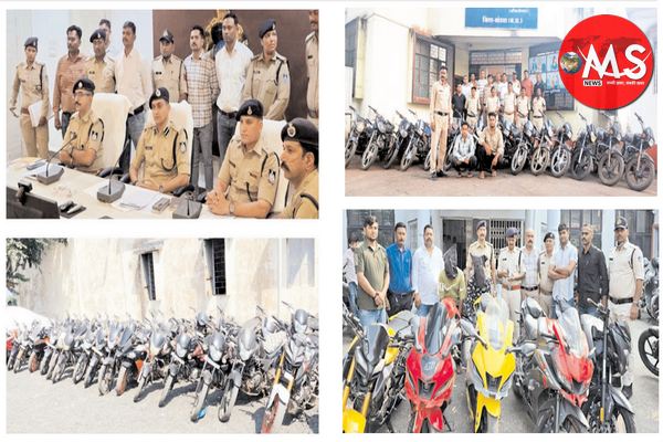 भोपाल: मध्य प्रदेश पुलिस द्वारा प्रदेशभर में वाहन चोरी की वारदातों पर अंकुश लगाने के लिए प्रभावी कार्यवाही करते हुये इस माह विभिन्न जिलों की पुलिस ने उल्लेखनीय सफलताएँ प्राप्त की हैं। पुलिस की त्वरित, प्रभावी और समन्वित कार्रवाई के परिणामस्वरूप प्रदेश के विभिन्न जिलों से कुल लगभग 118 दोपहिया वाहन बरामद किए गए हैं। इस दौरान धार पुलिस ने सबसे बड़ी सफलता हासिल करते हुए हाईवे पर रॉपी लगाकर लूट, डकैती और मोटरसाइकिल चोरी करने वाले आरोपी को गिरफ्तार किया। आरोपी की निशानदेही पर पुलिस ने कुल 38 मोटरसाइकिलें एवं लगभग 25 लाख रुपये का मशरूका बरामद किया, जो इस माह की सबसे बड़ी बरामदगी मानी जा रही है। भोपाल जिले की पुलिस ने भी उत्कृष्ट कार्यवाही करते हुए वाहन चोरी के मामलों का खुलासा किया है। थाना टी.टी. नगर पुलिस ने कार्रवाई करते हुए शहर के विभिन्न क्षेत्रों से चोरी गई 10 महंगी मोटरसाइकिलें, जिनमें कुछ सुपरबाइक भी शामिल है, बरामद की हैं। इसी प्रकार अन्य जिलों में भी उल्लेखनीय कार्यवाही की गई खंडवा जिले में थाना मांधाता पुलिस ने अंतरराज्यीय वाहन चोरी गिरोह का पर्दाफाश कर 15 मोटरसाइकिलें, शिवपुरी जिले में थाना बदरवास पुलिस ने 11 मोटरसाइकिलें, छतरपुर जिले में थाना सिविल लाइन पुलिस ने 7 मोटरसाइकिलें, मंडला में थाना बिछिया पुलिस ने 6 मोटरसाइकिलें, और सतना जिले में सिटी कोतवाली पुलिस ने 6 मोटरसाइकिलें एवं 1 स्कूटी बरामद की हैं।